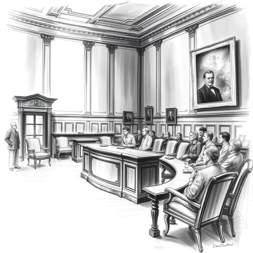 Create your own dramatic courtroom charcoal drawings with our free AI image generator. It's easy and fast!