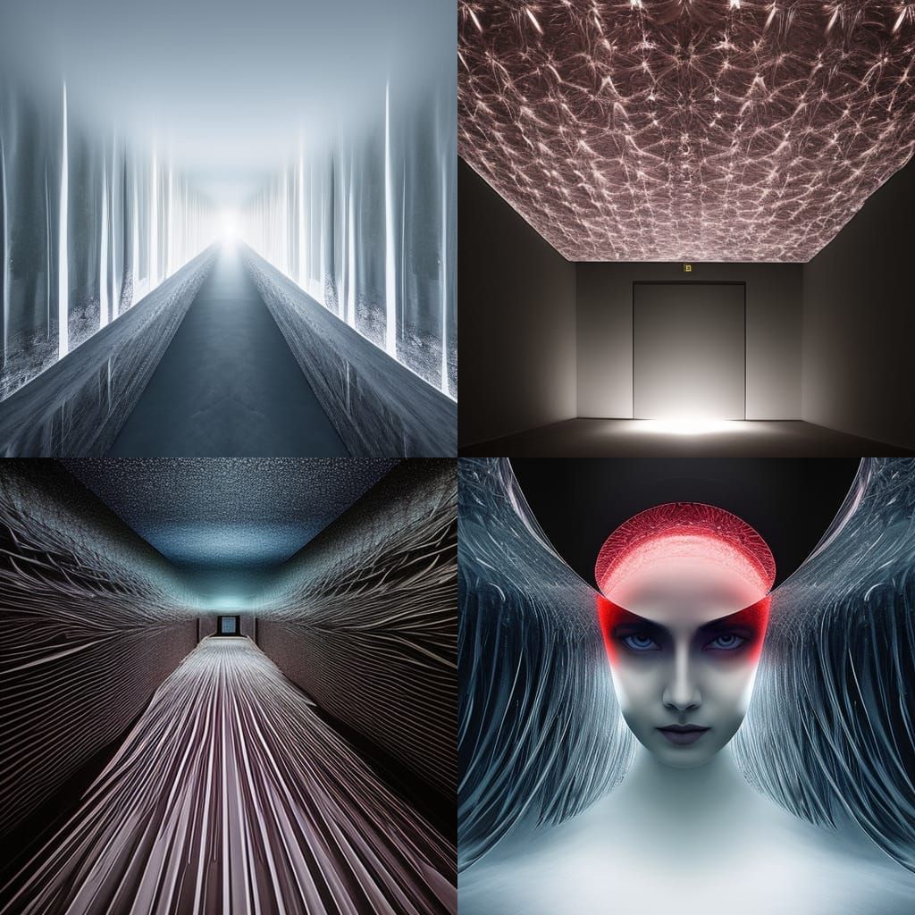 A surreal image of a hallway filled with blood. The focal point recedes into the distance, with ice crystals adding to the ethereal atmosphere, in a style reminiscent of hyperrealist oil paintings.