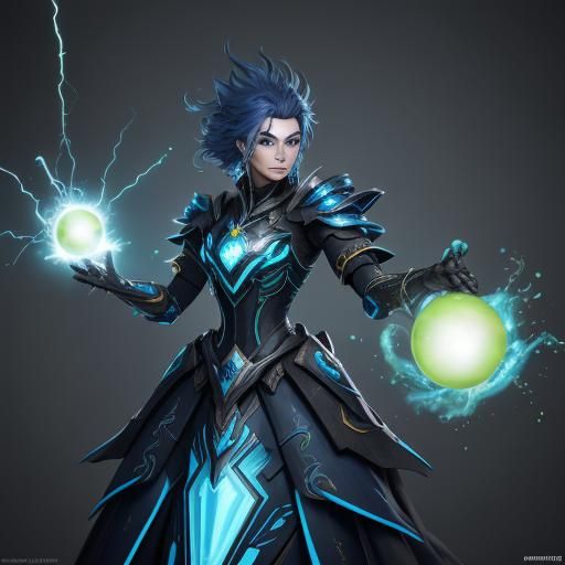 appears as a sleek, metallic peashooter with electric blue accents. Its body is composed of polished steel, adorned...