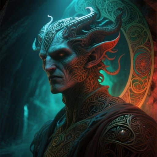 A highly detailed portrait of a mythical figure with a surreal, underground aesthetic. Features dynamic lighting and a cinematic color palette, rendered with the polish of Unreal Engine 5.