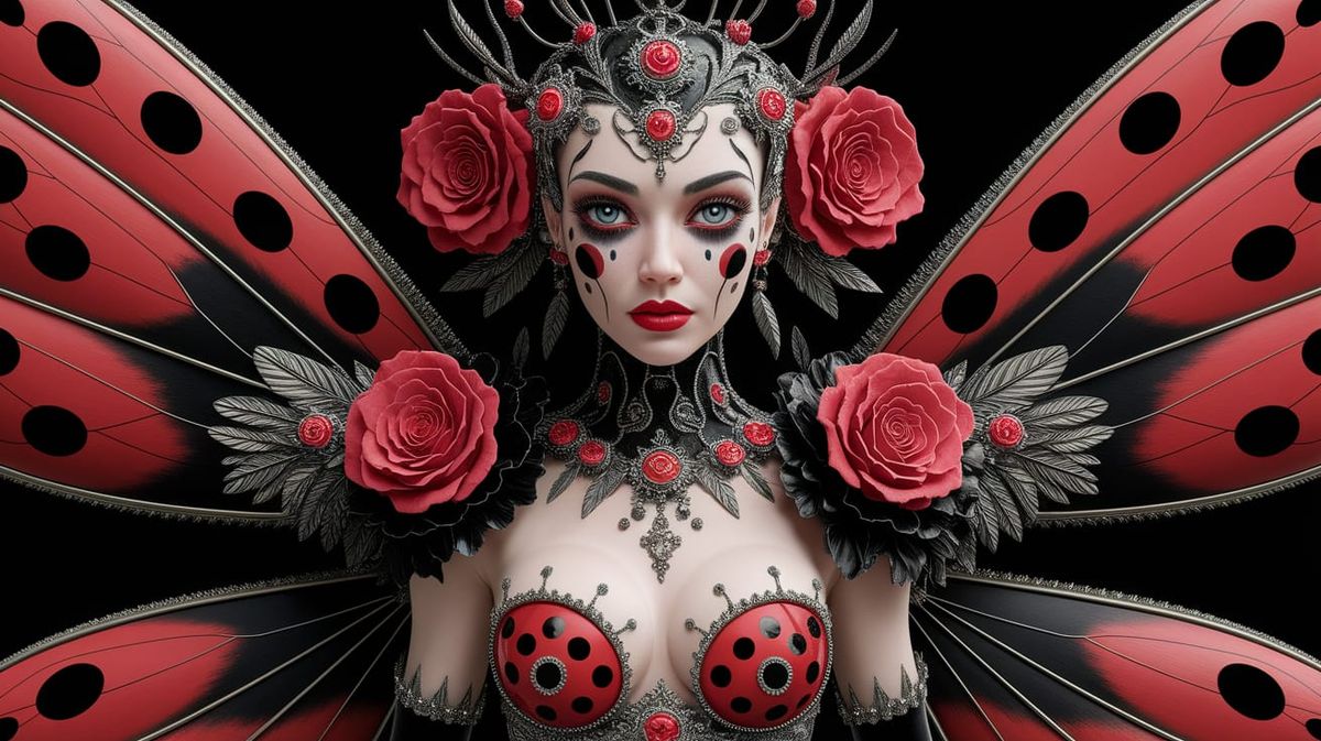 Generate your own unique ladybug queen images with detailed dresses and wings. Free and easy AI image creation.