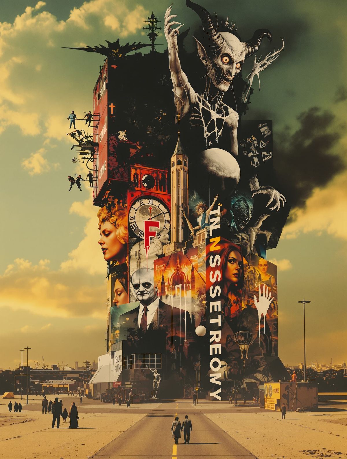 opposite thoughts of yesterday: terminal tower of silence: skewed overlapped refracted photomontage animistic icon by emil melmoth, Peter Baum, hermann nitsch & THAT Salvador DalΓ, implausible situationist subliminal nosferatu by bill brandt, jakub erol and Leopold LΓΆwy, Qimmy Shimmy illusion of safety ...