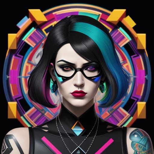 This vibrant portrait showcases Emo Nicola Tesla in a whirlwind of angular shapes and clashing colors, blending Neo-Cubism and Geometric Fauvism styles with an air of avant-garde futurism.