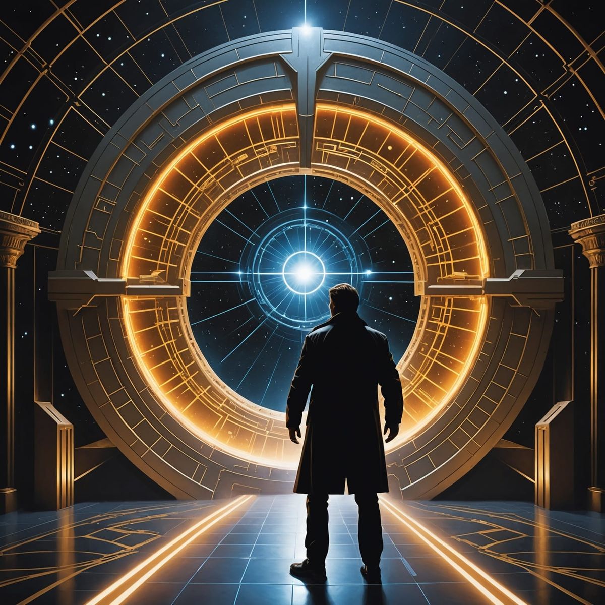 This image shows a conceptual representation of a quantum leap. It visualizes the idea of transitioning through a stargate, rendered as abstract digital art.