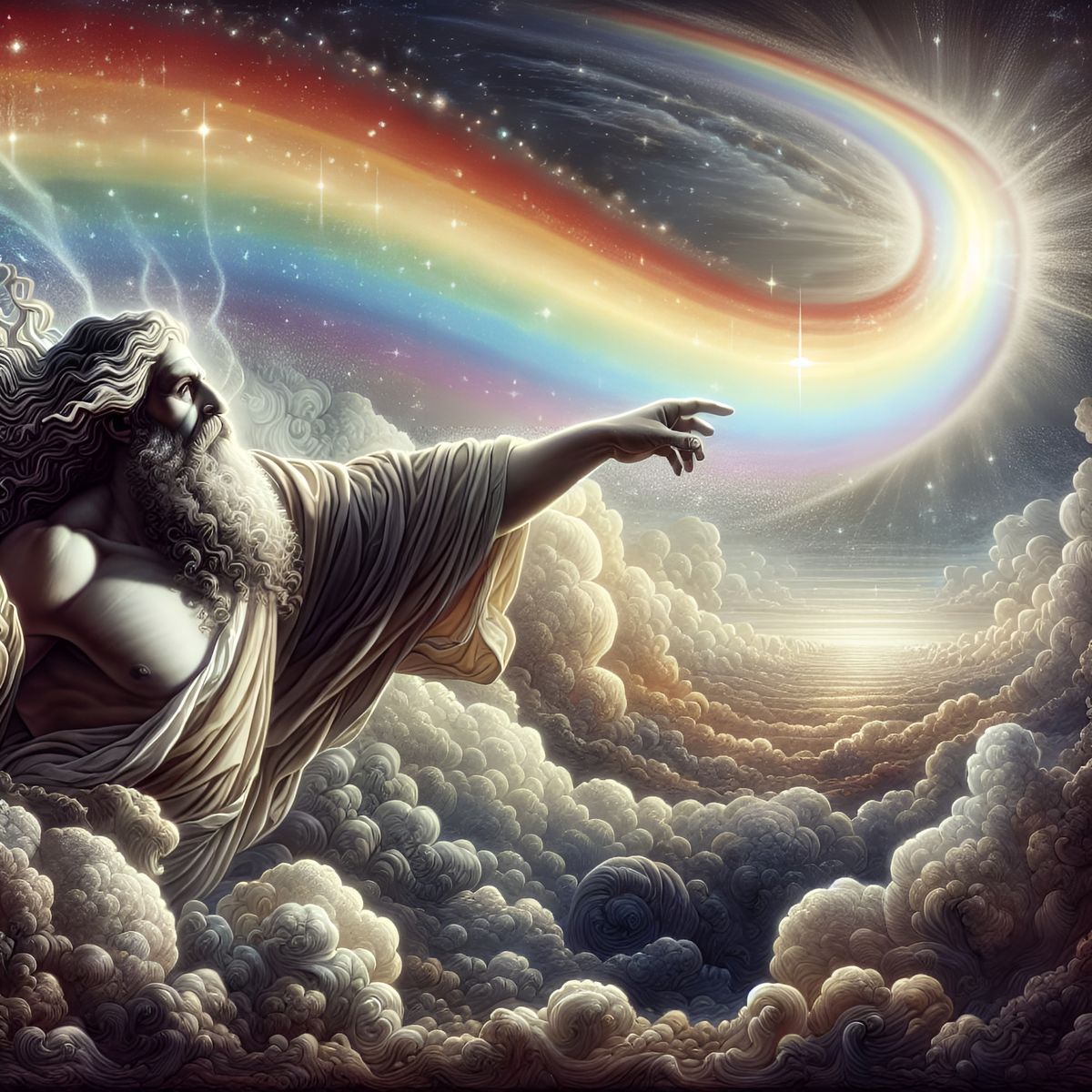 Divine Deity Contemplates Rainbow Covenant in Celestial Scen...