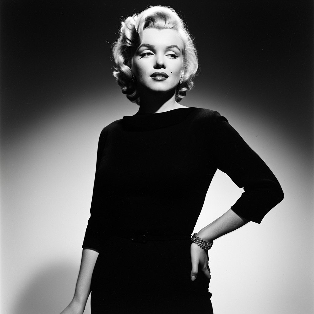 Easily generate your own black and white Marilyn Monroe inspired AI images. It's free and fun!