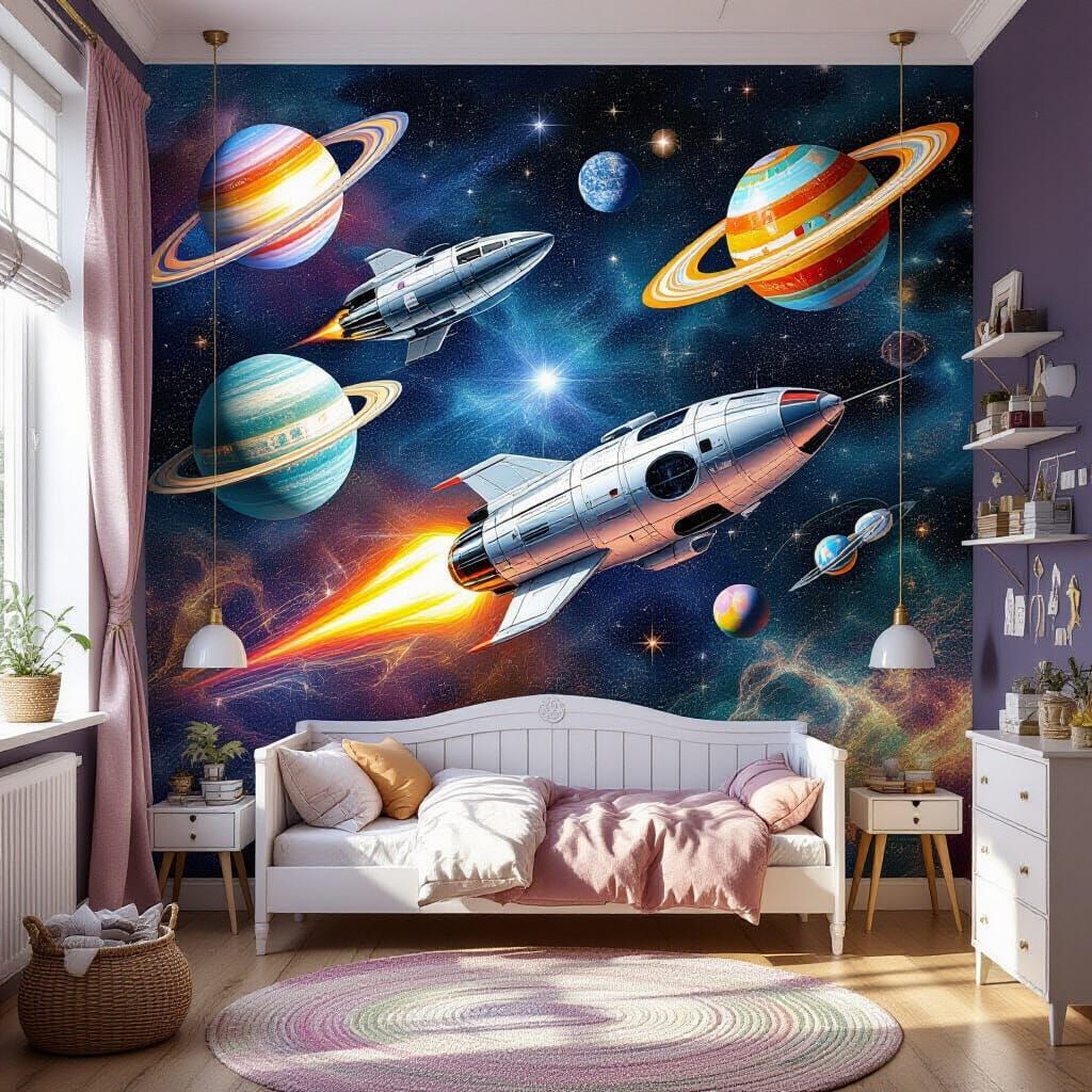 Design unique space adventure scenes for walls or any project. Free and easy AI image generation.
