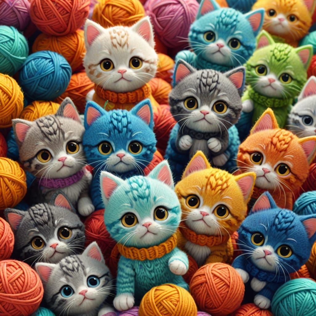 Make your own cute cartoon kittens in knitted style with our free AI image generator!