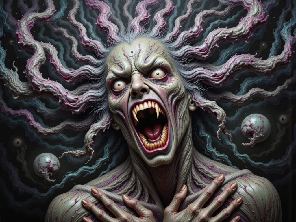 Use our free AI to generate unique images of pain induced psychosis and horror themes easily.