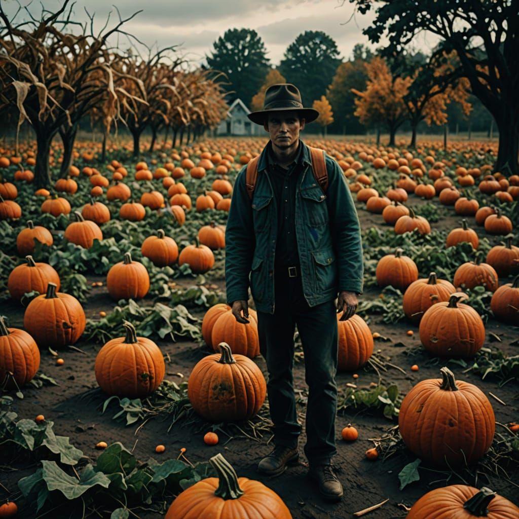 Easily generate your own spooky pumpkin patch images with our free AI tool. Get creative with cinematic styles!
