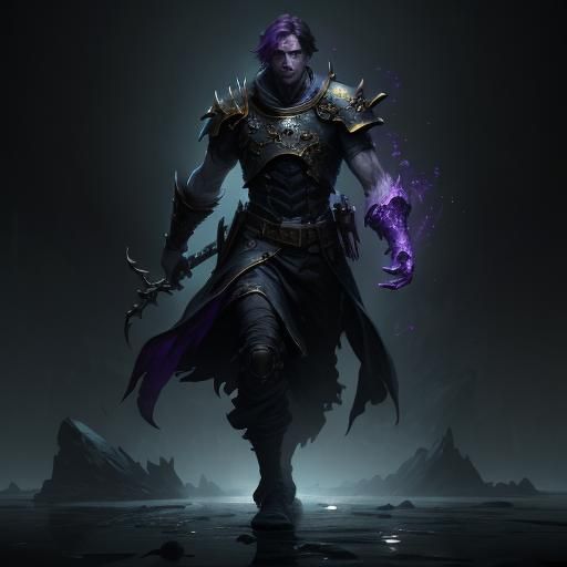 A stunning image depicting a soul in a dark fantasy setting. The artwork features dynamic lighting, intricate details, and deep colors with purple and yellow complementary hues. The image has an art nouveau aesthetic.