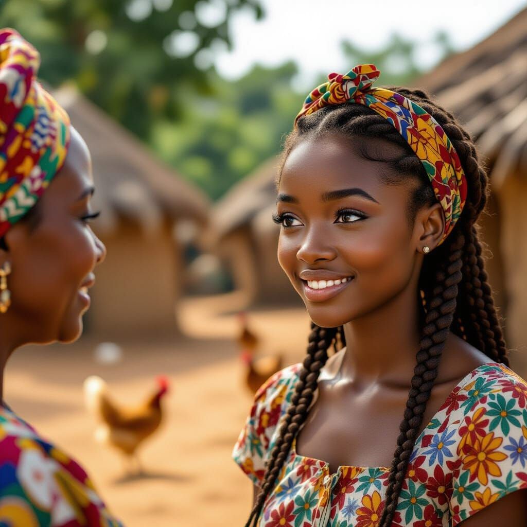 This image captures a close-up of a teenage girl with braided hair and a simple dress, showing a sweet smile and a hint of envy. Ultra-realistic eyes and cinematic lighting create a dramatic portrait.