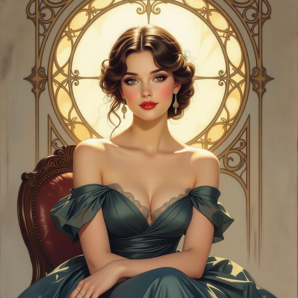 A captivating image of an elegant young woman in a serene studio setting. The portrait features delicate shading and expressive lines in the style of a graphite pencil drawing.