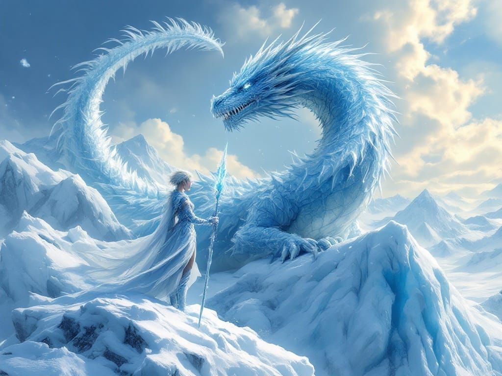 Instantly generate majestic ice dragon scenes with our free AI image generator, perfect for fantasy art and winter landscapes