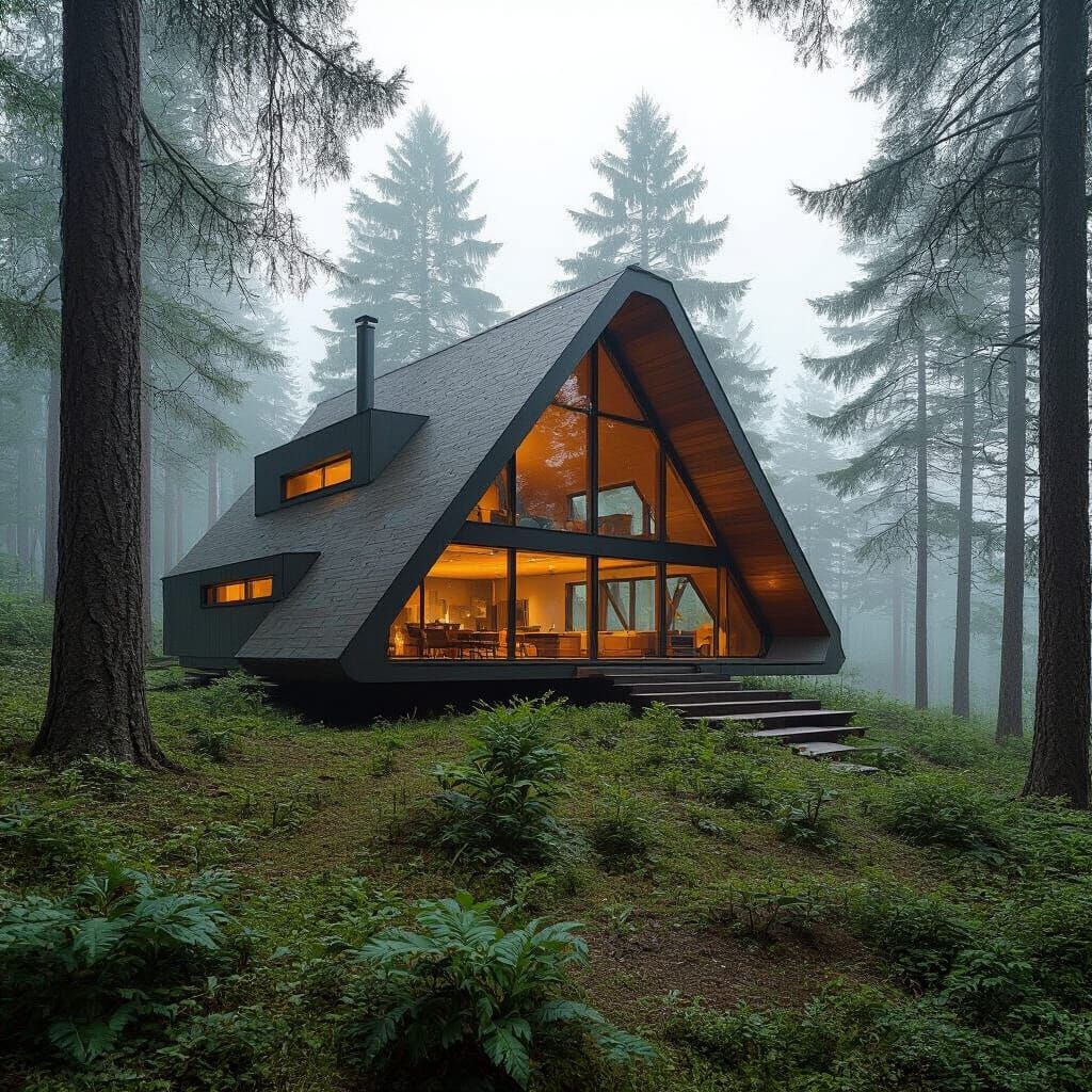 This image showcases a serene house surrounded by vibrant green foliage and natural elements, evoking a sense of peace and tranquility in a beautiful outdoor setting.
