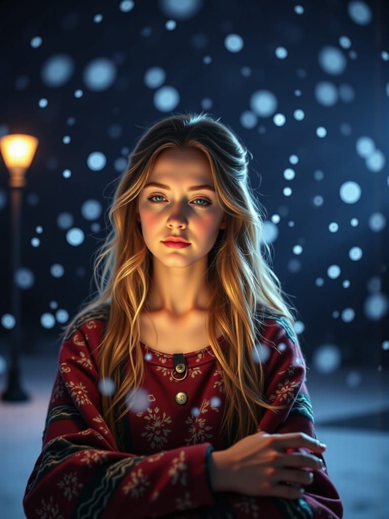 Easily generate your own images of blondes in wool sweaters in the snow with our free AI tool.