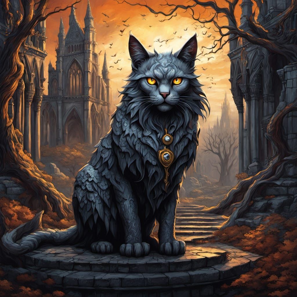 Create your own majestic cat images in gothic landscapes. It's free, easy, and endlessly creative with AI!