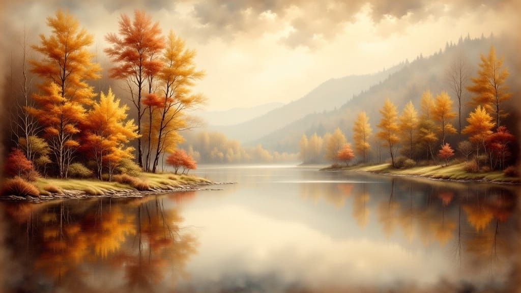 Easily generate stunning antique-style lakescape wallpapers with our free AI image maker, featuring warm tones and vintage flair.