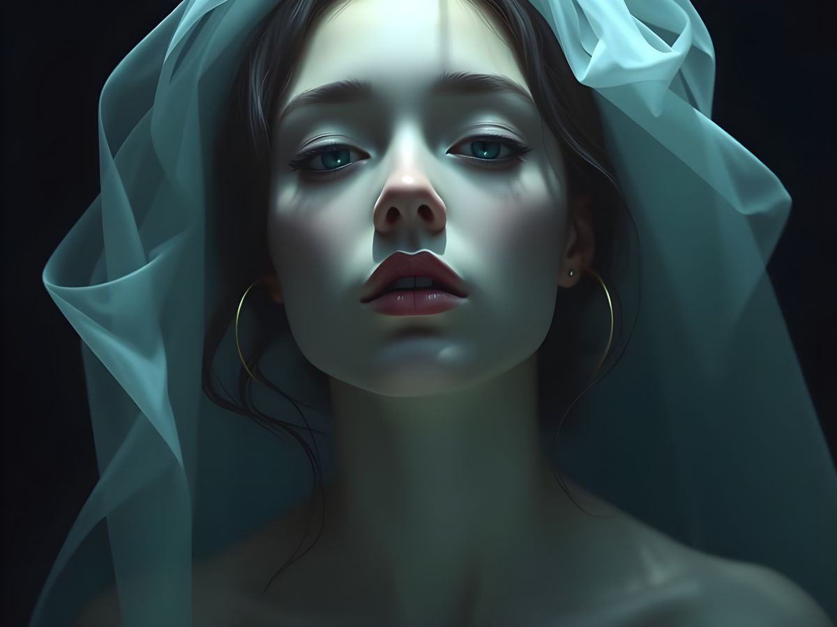 A portrait of a woman bathed in soft, ethereal light, created in a dreamlike digital painting style.
