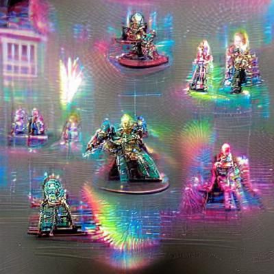 This striking image features a holographic Warhammer figure. The design incorporates futuristic elements and vibrant, glowing colors to create a visually compelling representation.