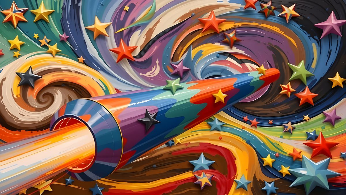 This image features a sharp, perfectly smooth hollow cylinder with a vibrant, high-velocity exhaust. It is set against a background of a vast, deep vortex maelstrom with swirling colors and stars, rendered in a vivid, unbounded motion.