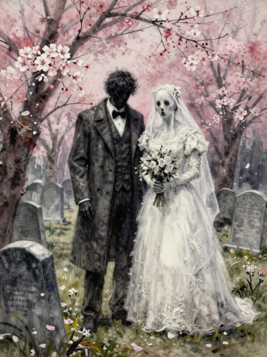 Generate your own unique ghostly couple images, reanimated in a graveyard, using our free and easy AI tool.