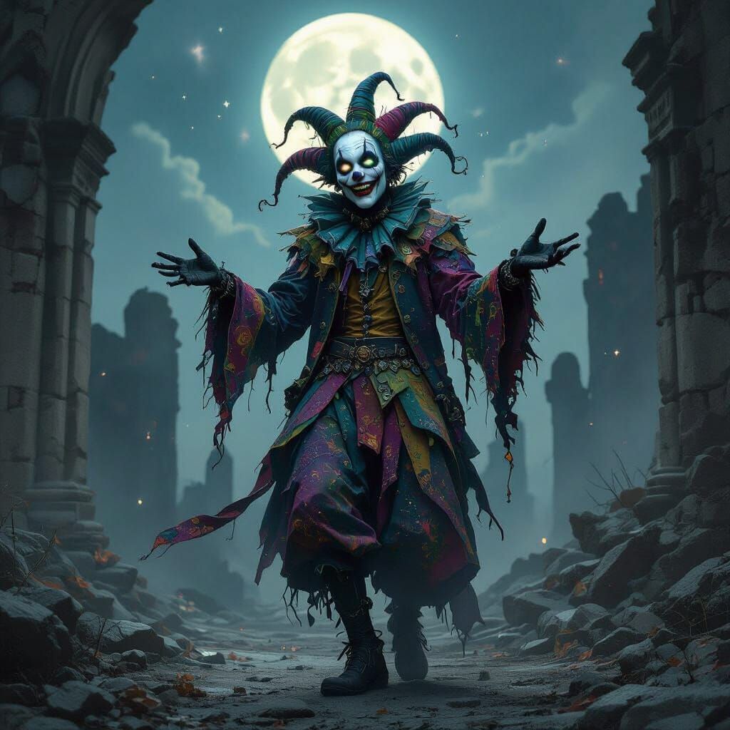 Create your own spectral jester images! It's free and easy to conjure hauntingly beautiful art with AI.