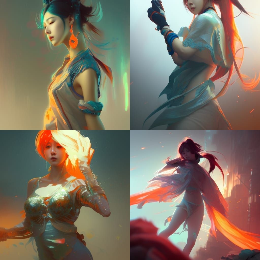 This image shows an AI-generated rendering of K-pop art. The aesthetic features dynamic lighting, intricate detail, and triadic colors. The artwork is reminiscent of art nouveau.