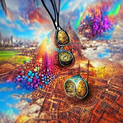 A digitally illustrated steampunk poster art image of orgone pendants. The artwork features psychedelic and colourful elements rendered in hyperrealism with HDR.