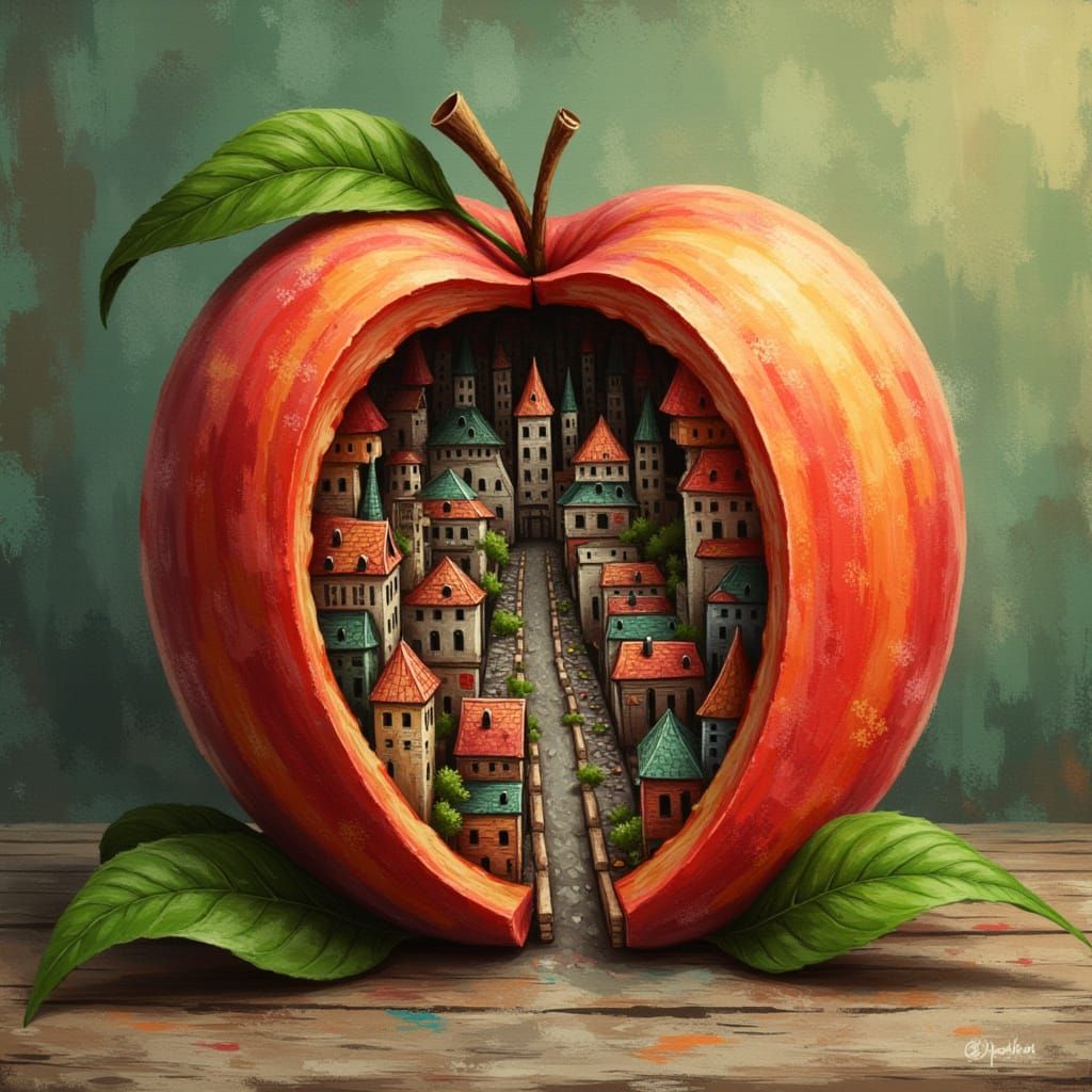Design your own unique miniature cities nestled within giant fruits. Free and easy AI image generation.