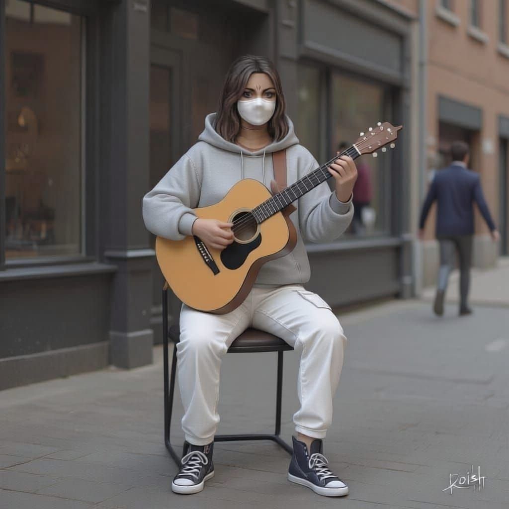 How did your prompt get this guitar and converse shoes and no black gloves? 😁
