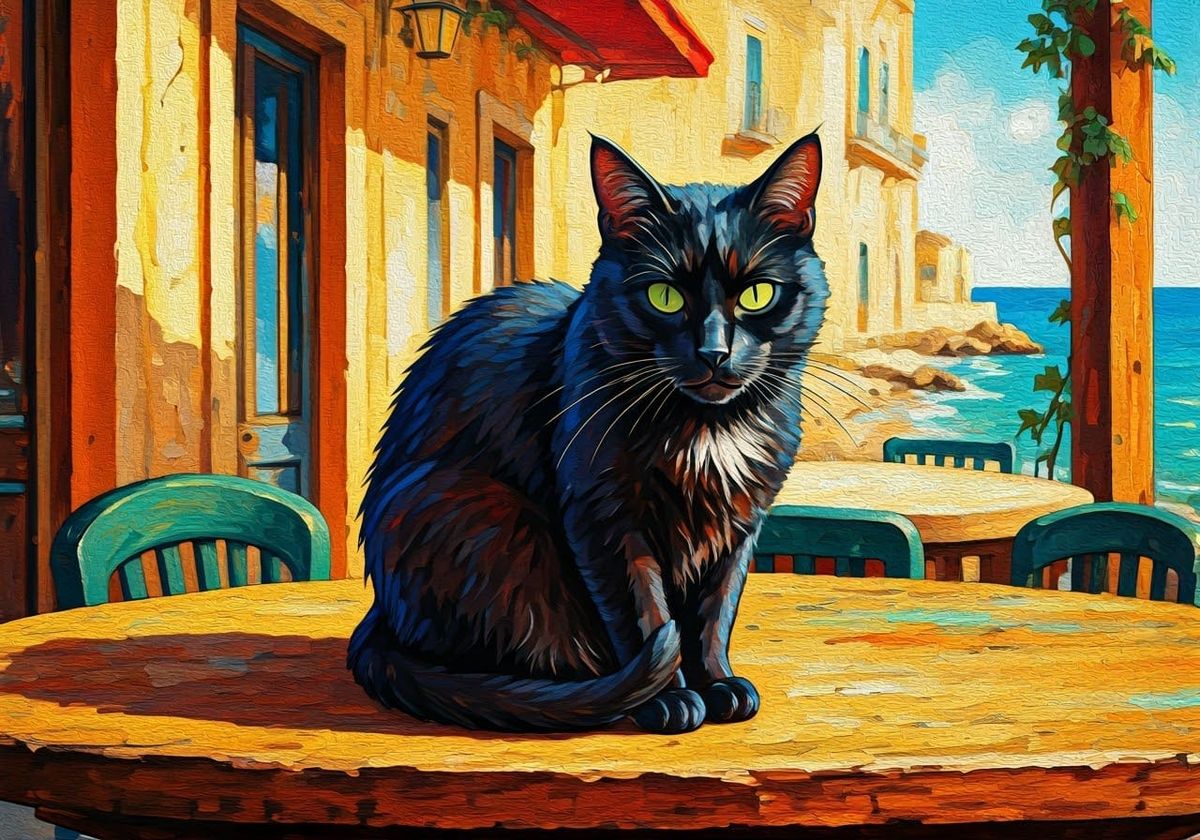 Easily create your own images of cats at the beach or seaside restaurants with our free AI image generator