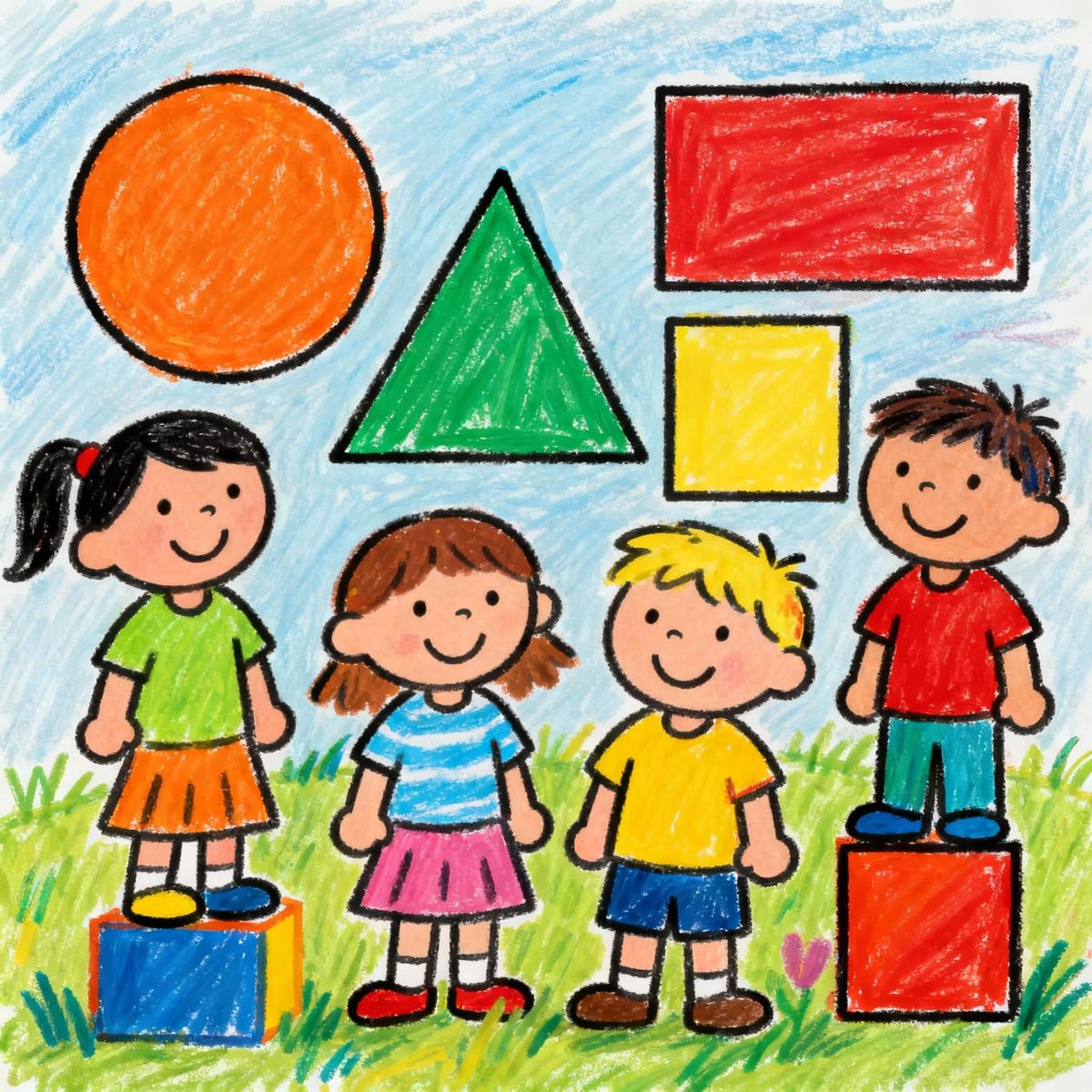 Easily create your own AI-generated drawings of first graders with geometric shapes. It's free and simple!