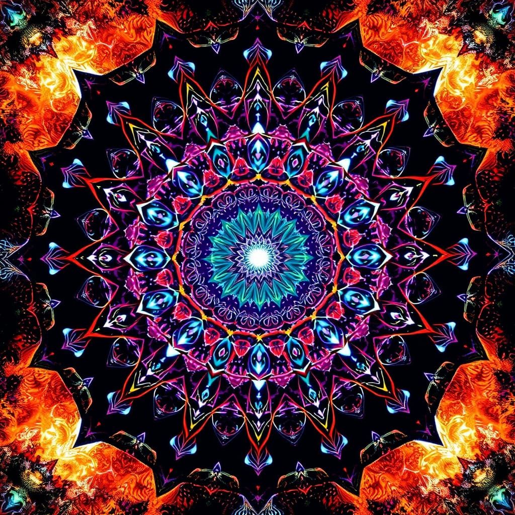 This image showcases a stereogram-style artwork featuring a quantum nebula mandala. The vibrant neon colors and alcoholic ink effect create a stunning visual.