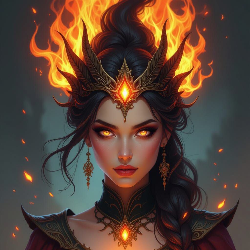 Generate unique sorceress images with fiery eyes and flaming headdresses using our free AI tool. Easy and fast!