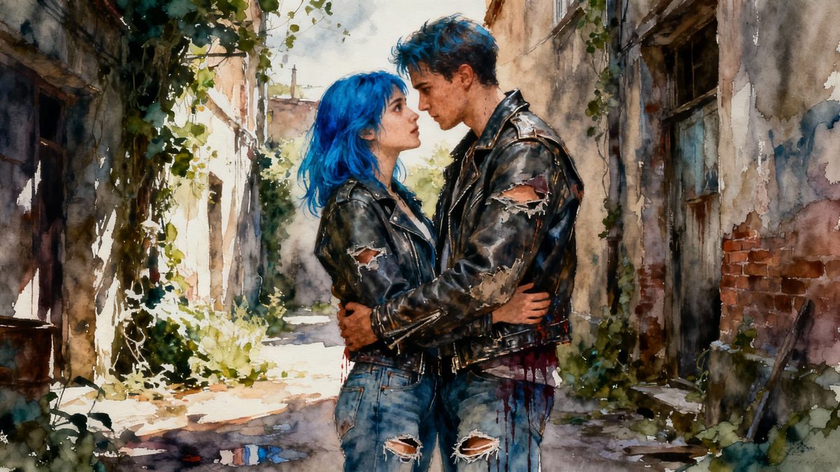 watercolor beautiful shirtless punk woman. rustic, blue hair, Fairytale, love, emotion, insanely detailed watercolor painting by Pino Daeni, Jeremy Mann, Carne_Griffiths, Wadim Kashin, James Gurney, 16k resolution, fine art, super dramatic light, beautiful