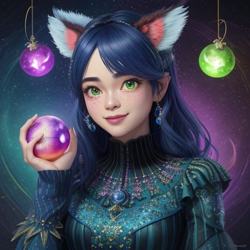 This enchanting image showcases a fantastical creature with a cute face and magical orbs shimmering in the air, rendered in ultra-detailed 8K CGI.