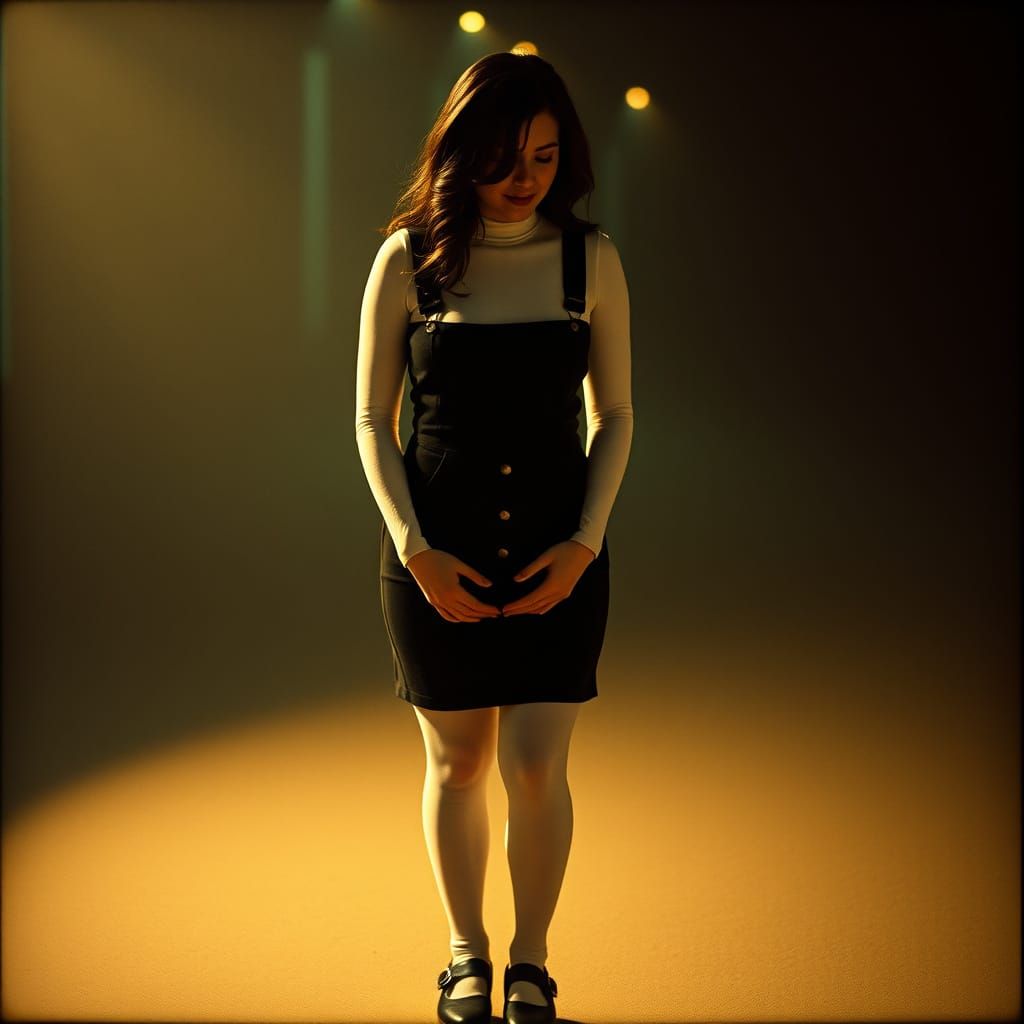 This image captures a stunning woman in a nostalgic, cinematic style, with soft lighting and muted colors, evoking a bygone era and a sense of vintage charm.