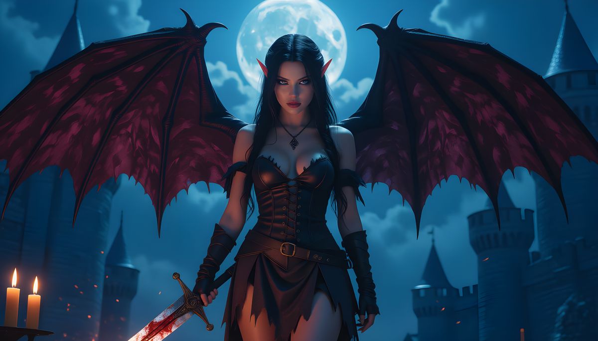 Easily generate your own photorealistic Drow warrior images with vivid blue eyes and large wings. Free and simple to use!