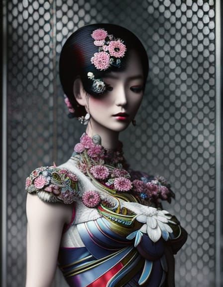 A digital art piece showcasing a doll-like figure. The artwork emphasizes a refined aesthetic, employing high resolution and drawing inspiration from various artistic styles.