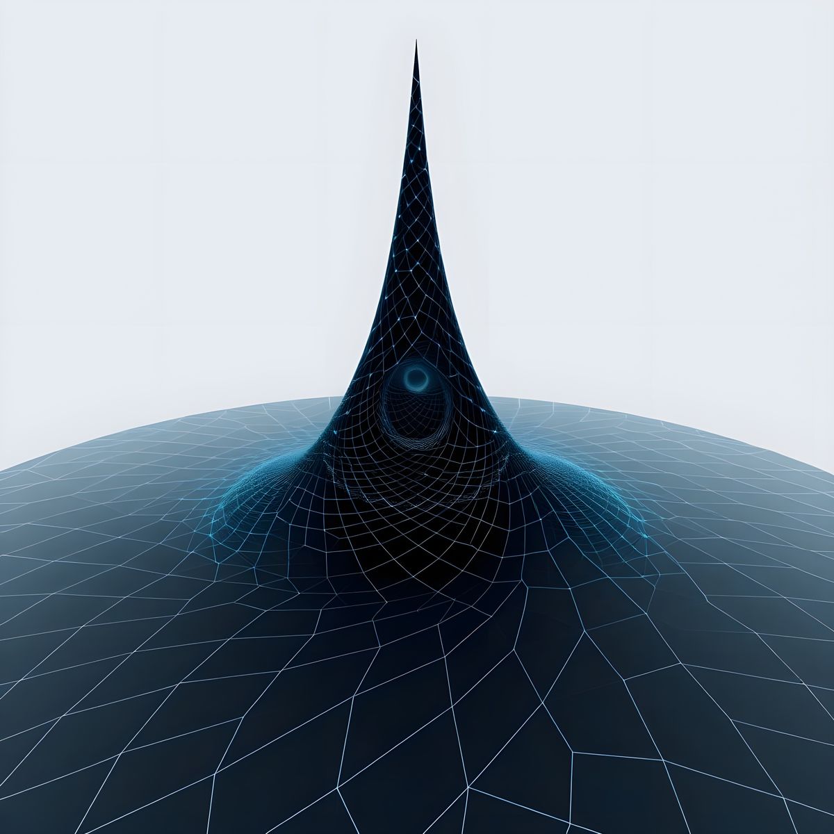 Ulam spiral 1 to 1000 in Black, prim numbers with blue pattern, Generative art, geometric abstract art, recursive fractal, recursive fractals, fourteen-dimensional, shown as 3d cone, connect second part of twin primes with first Part of next twin prime neon white lines