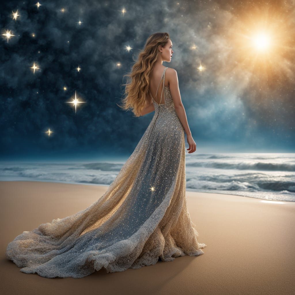 Easily design your own unique dresses inspired by beaches, oceans, and starry skies using our free AI image generator.