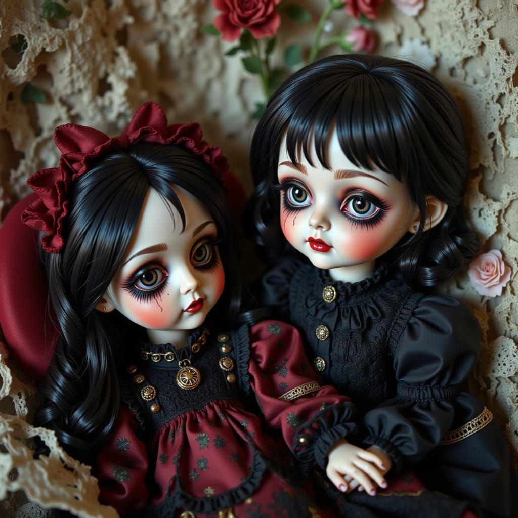 Generate unique Victorian goth vampire dolls with our free AI art tool. Easy and fun to create your own masterpiece.