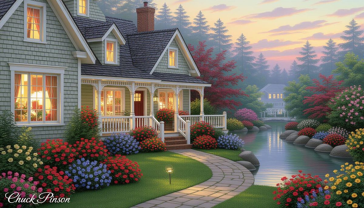 This image shows an ultrarealistic garden scene with flowers. The artwork evokes luminism with its soft focus and idyllic, painterly style.