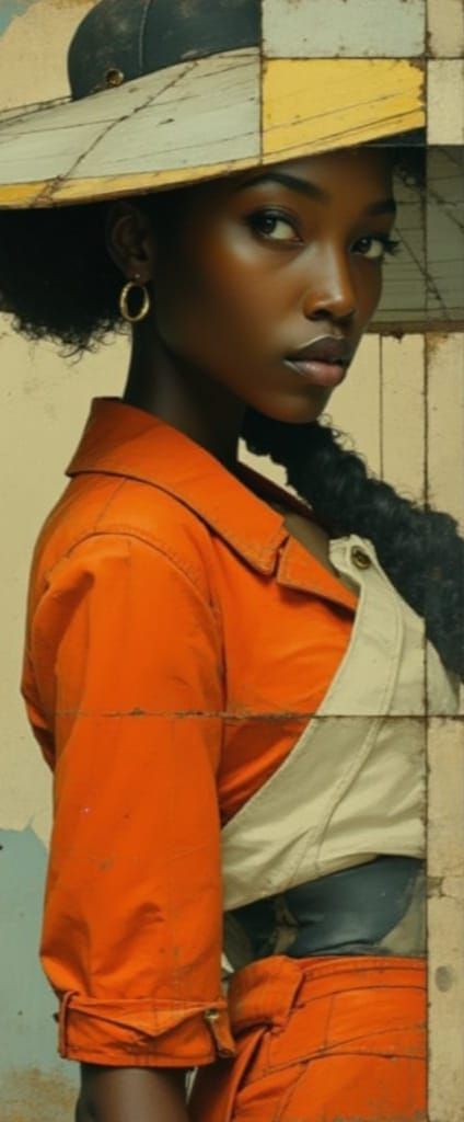 This image depicts a vibrant and cinematic scene of African American fashion models in zoot suits, set against a kaleidoscope of cool blues and burnished gold. Intricate details and geometric shapes come together in a jazzy and dramatic atmosphere.