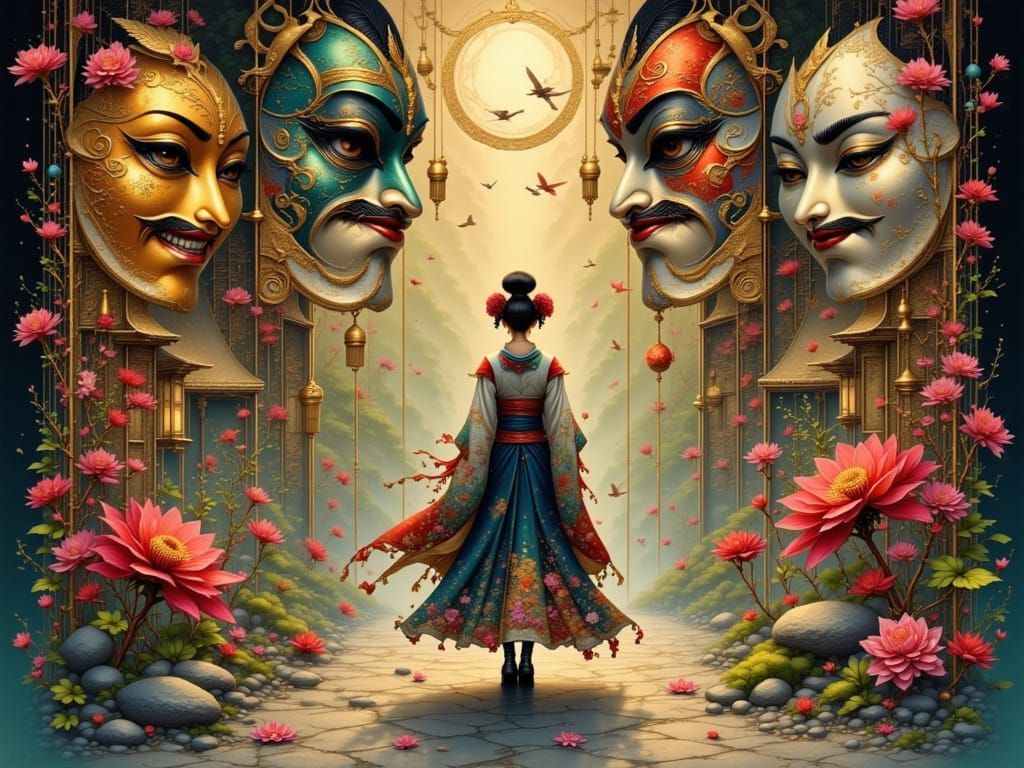 Generate your own unique images inspired by Japanese culture, Kabuki masks, and traditional stories. Free and easy to use!
