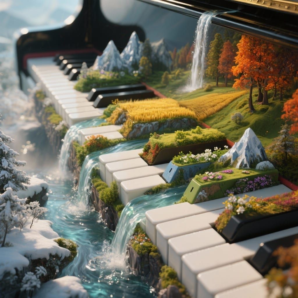 Free and easy to use AI image generator. Create unique piano waterfall scenes in seconds.