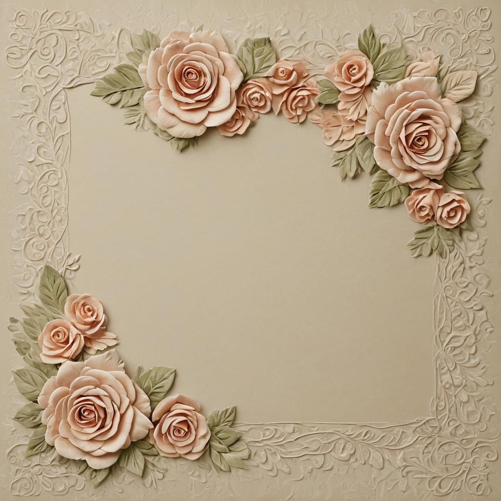 This image shows a delicate floral design. The pattern features roses embossed on textured paper, creating an elegant, dimensional border.