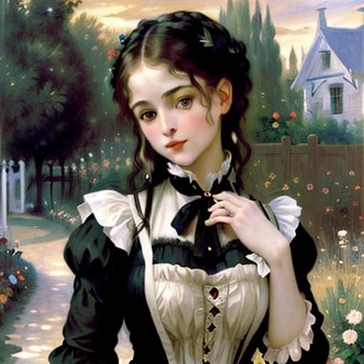 Create your own cute goth cottage images in the style of Bouguereau, Waterhouse or Renoir. It's free and easy!