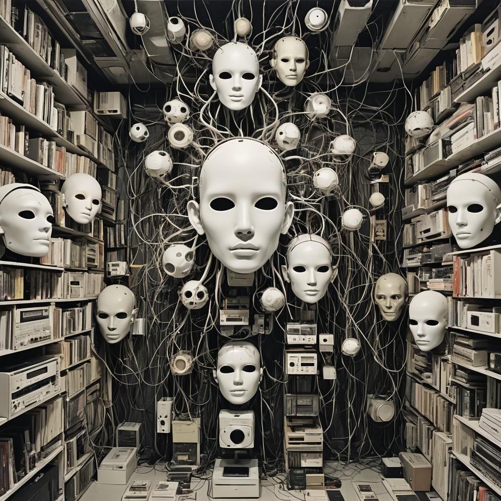A surreal image depicting a clouded headspace filled with interconnected elements. It features vibrant colors, intricate details, and a blend of organic and technological themes reminiscent of psychedelic art.
